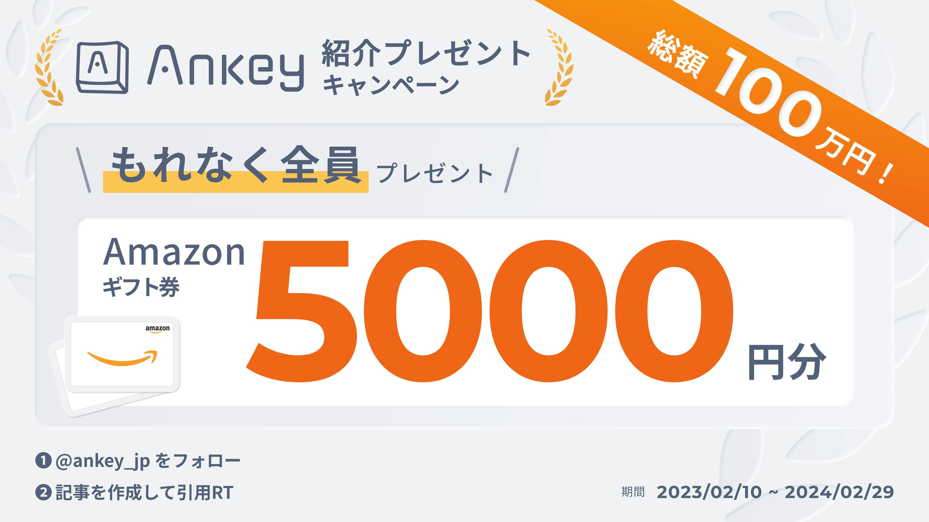 総額100万円! Ankey を紹介してくれた人全員にもれなく Amazon ギフト券 5000 円分をプレゼントキャンペーン!!